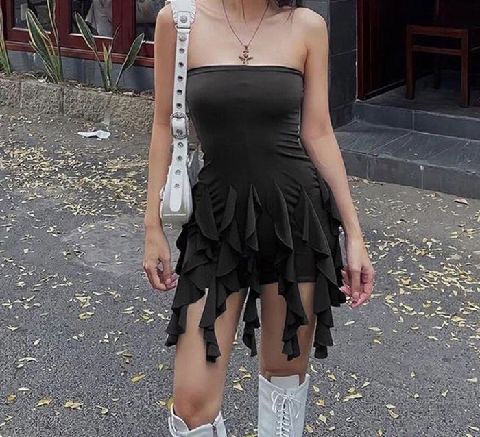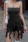 (Real Image)2023 Styles Women Sexy&Fashion Spring&Summer TikTok&Instagram Styles Black Tassel Club DressSKU: #CF59606-1