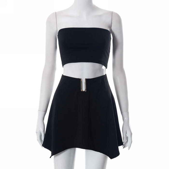 (Real Image)2023 Styles Women Sexy&Fashion Spring&Summer TikTok&Instagram Styles Black Two Piece DressSKU: #CF80064-1