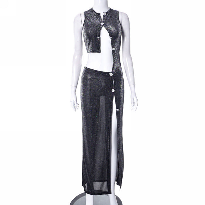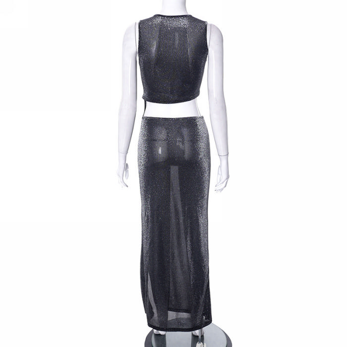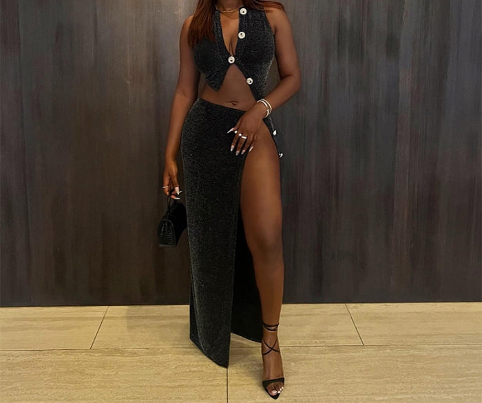 (Real Image)2023 Styles Women Sexy&Fashion Spring&Summer TikTok&Instagram Styles Black Velvet Open Maxi DressSKU: #CF68285-1
