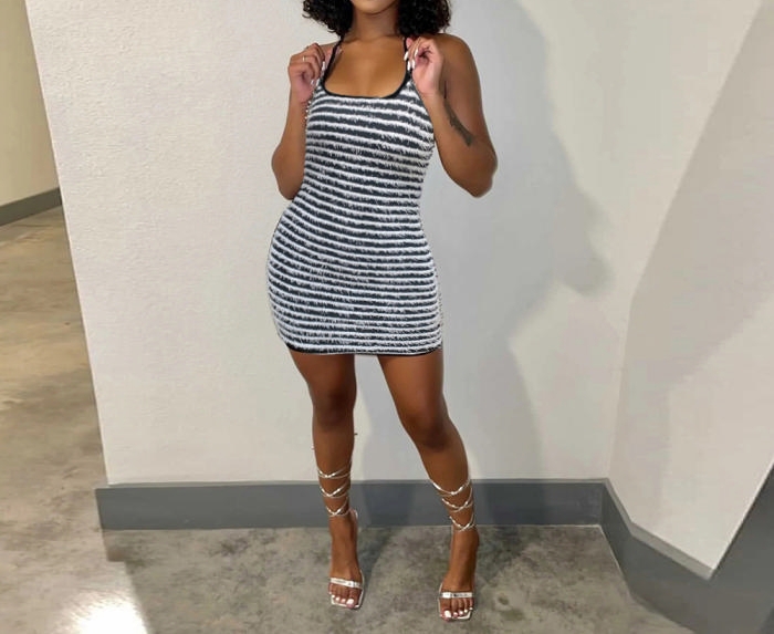 (Real Image)2023 Styles Women Sexy&Fashion Spring&Summer TikTok&Instagram Styles Black&White Strap Mini DressSKU: #OM394-1