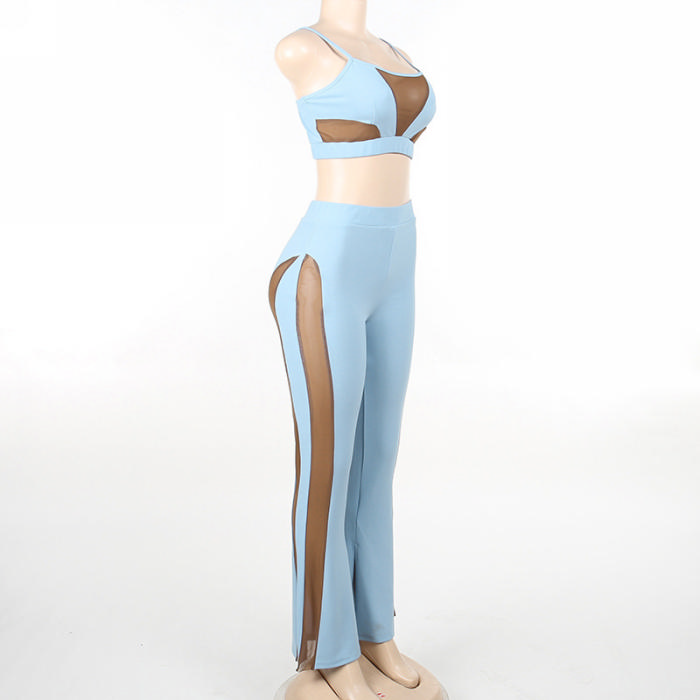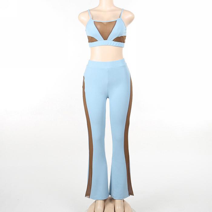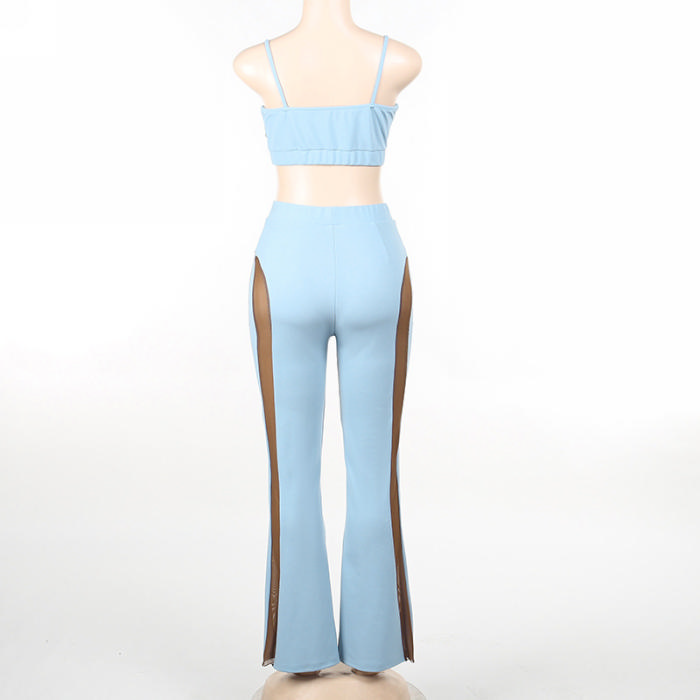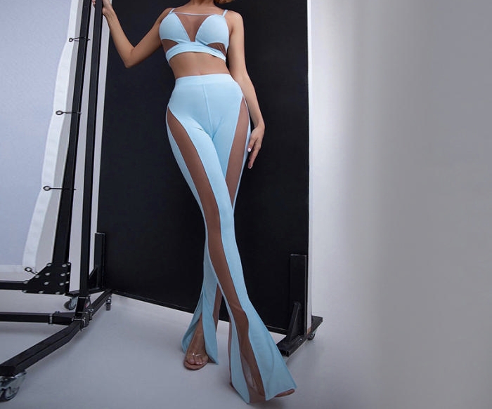 (Real Image)2023 Styles Women Sexy&Fashion Spring&Summer TikTok&Instagram Styles Blue Bar+Long Pants Two Piece SuitSKU: #XF92781-1