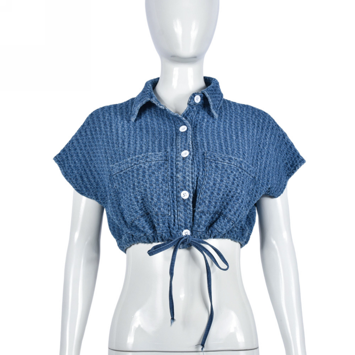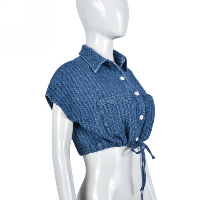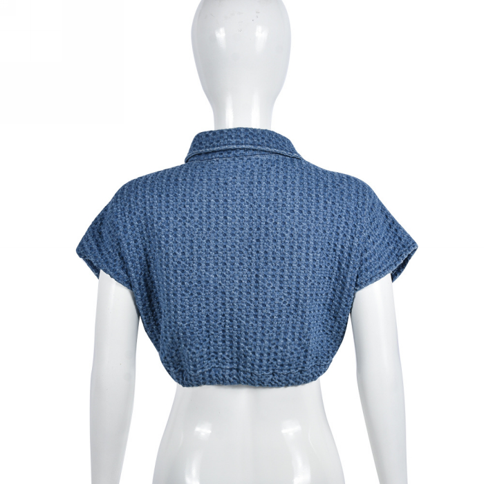 (Real Image)2023 Styles Women Sexy&Fashion Spring&Summer TikTok&Instagram Styles Blue Front Button TopsSKU: #CF59702-1