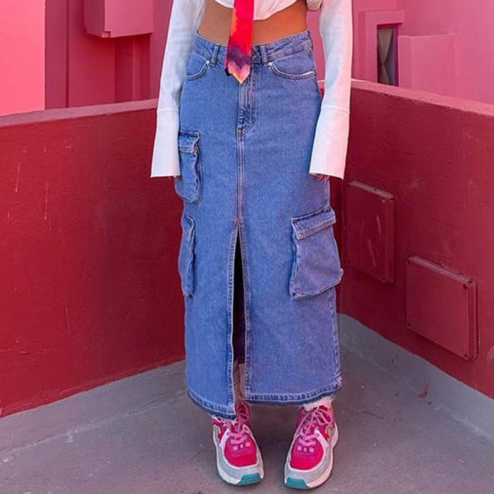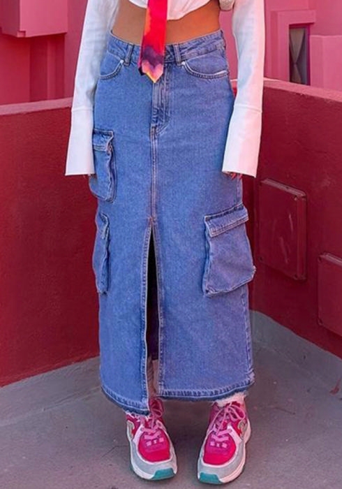 (Real Image)2023 Styles Women Sexy&Fashion Spring&Summer TikTok&Instagram Styles Blue Jeans SkirtsSKU: #CF59434-1