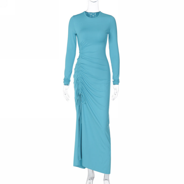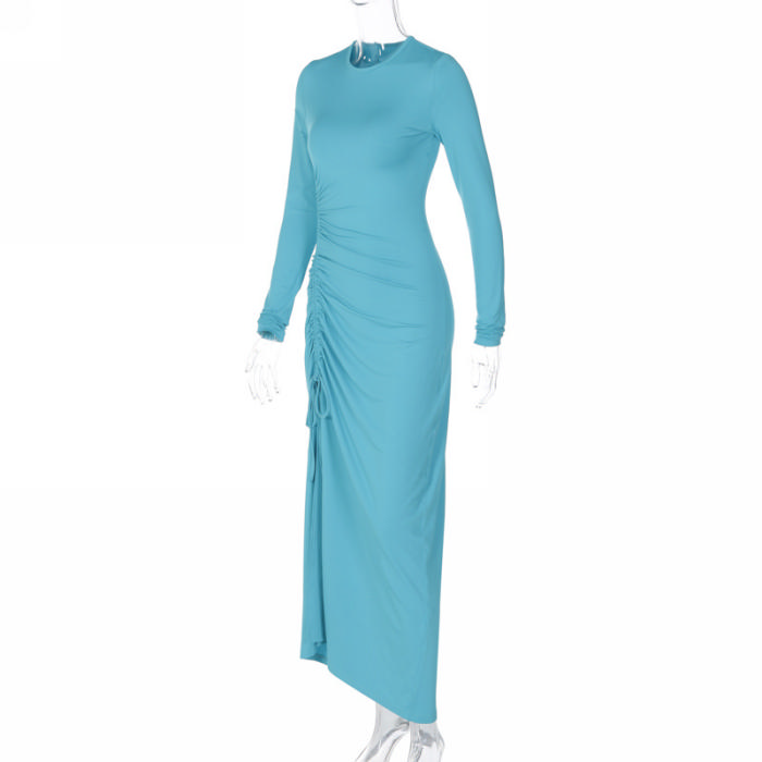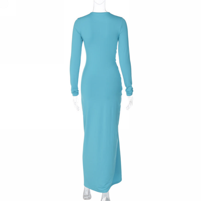 (Real Image)2023 Styles Women Sexy&Fashion Spring&Summer TikTok&Instagram Styles Blue Long Sleeve Maxi DressSKU: #CF88102-1