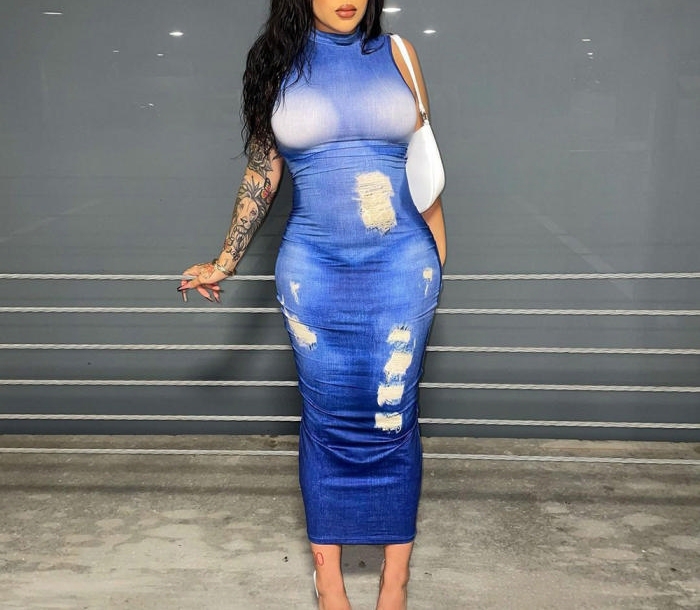 (Real Image)2023 Styles Women Sexy&Fashion Spring&Summer TikTok&Instagram Styles Blue Maxi DressSKU: #CF59526-1