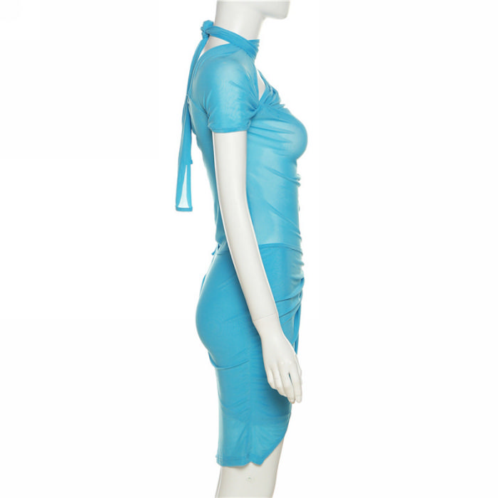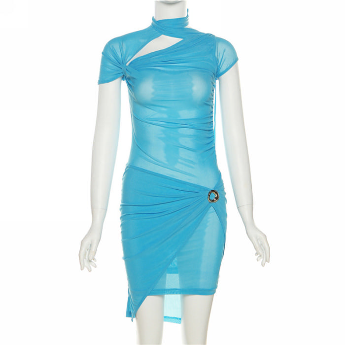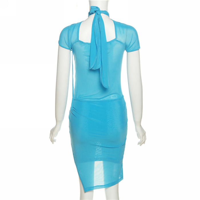 (Real Image)2023 Styles Women Sexy&Fashion Spring&Summer TikTok&Instagram Styles Blue Mesh Mini DressSKU: #CF77301-1