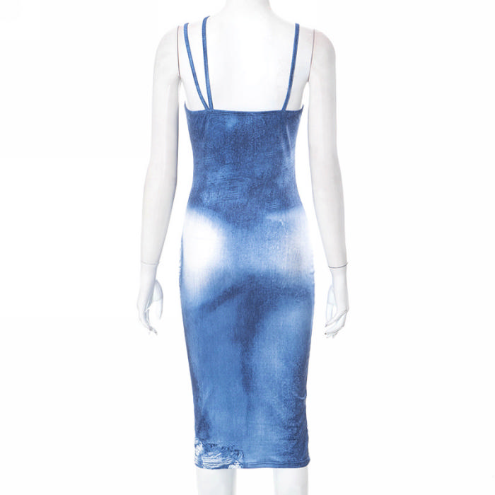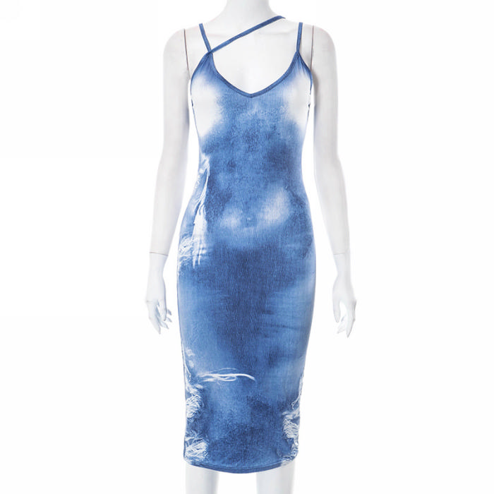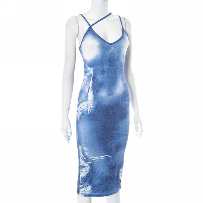 (Real Image)2023 Styles Women Sexy&Fashion Spring&Summer TikTok&Instagram Styles Blue Print Midi DressSKU: #CF80101-1