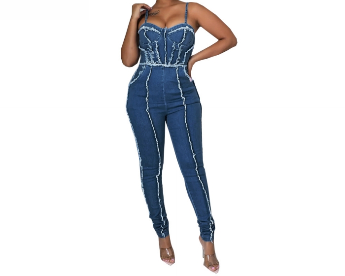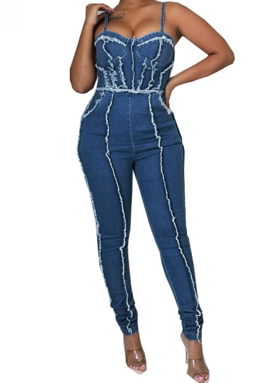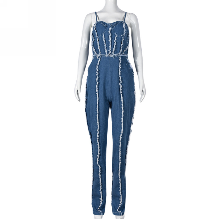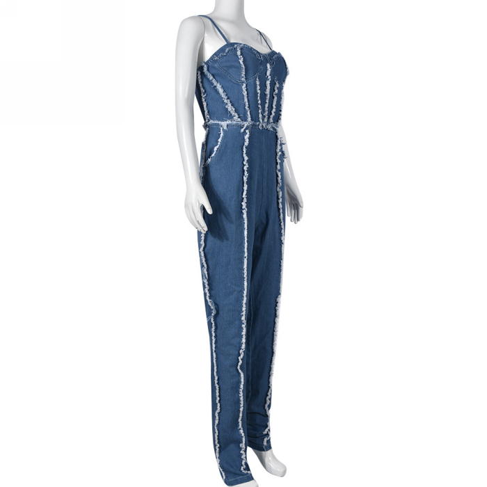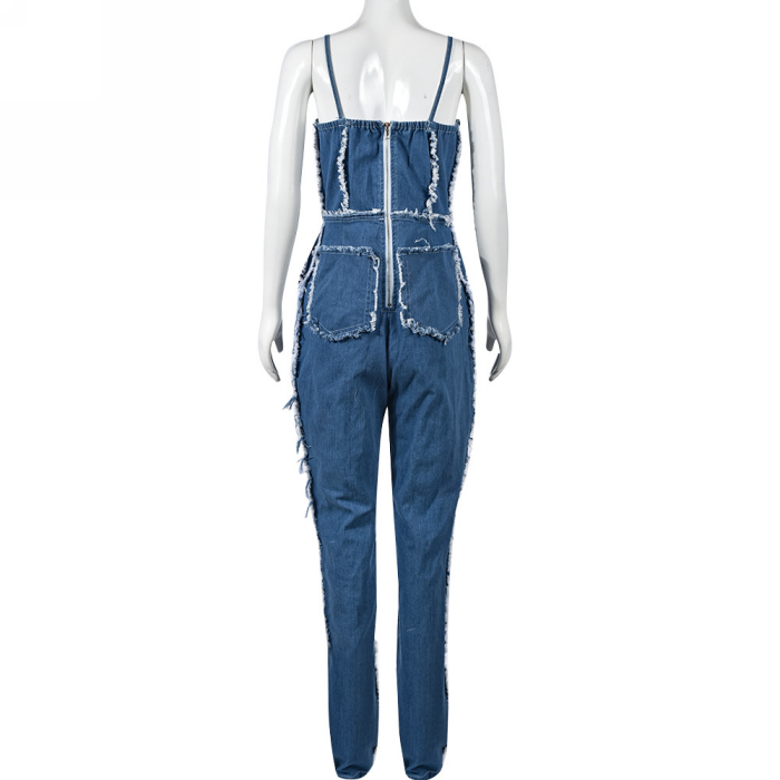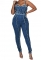 (Real Image)2023 Styles Women Sexy&Fashion Spring&Summer TikTok&Instagram Styles Blue Ripped JumpsuitSKU: #CF59652-1