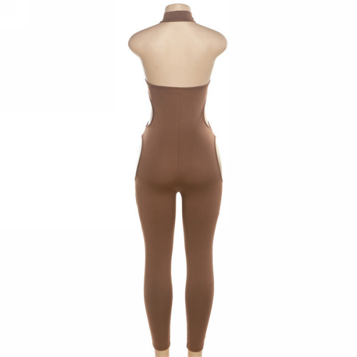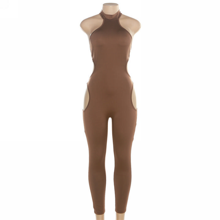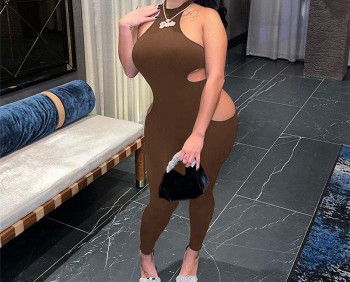 (Real Image)2023 Styles Women Sexy&Fashion Spring&Summer TikTok&Instagram Styles Brown Cut Out JumpsuitSKU: #CF77260-1