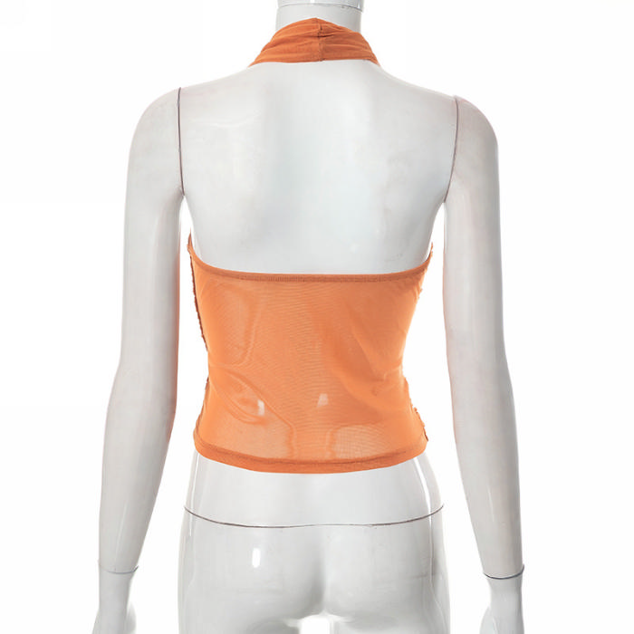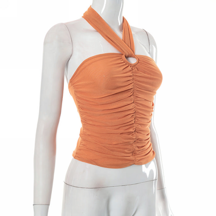 (Real Image)2023 Styles Women Sexy&Fashion Spring&Summer TikTok&Instagram Styles Brown Halter TeeSKU: #CF76076-1