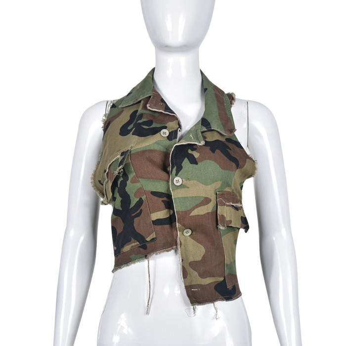 (Real Image)2023 Styles Women Sexy&Fashion Spring&Summer TikTok&Instagram Styles Camouflage Front Button TopsSKU: #CF59438-1
