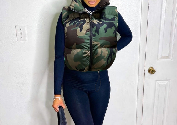 (Real Image)2023 Styles Women Sexy&Fashion Spring&Summer TikTok&Instagram Styles Camouflage Sleeveless CoatSKU: #CF59630-1