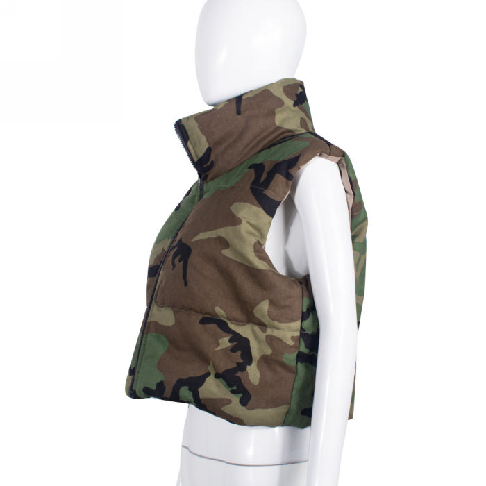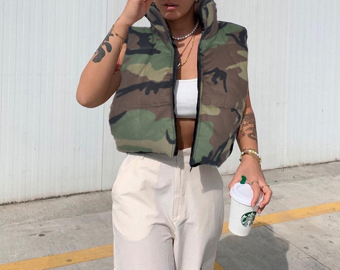(Real Image)2023 Styles Women Sexy&Fashion Spring&Summer TikTok&Instagram Styles Camouflage Sleeveless CoatsSKU: #CF59618-1