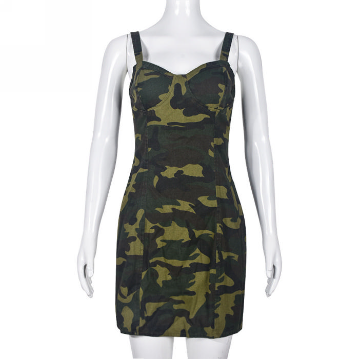 (Real Image)2023 Styles Women Sexy&Fashion Spring&Summer TikTok&Instagram Styles Camouflage Strap Club DressSKU: #CF59560-1