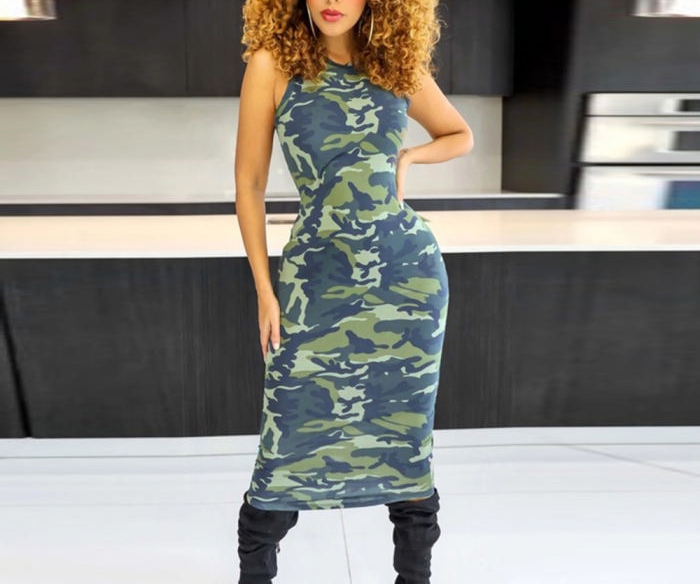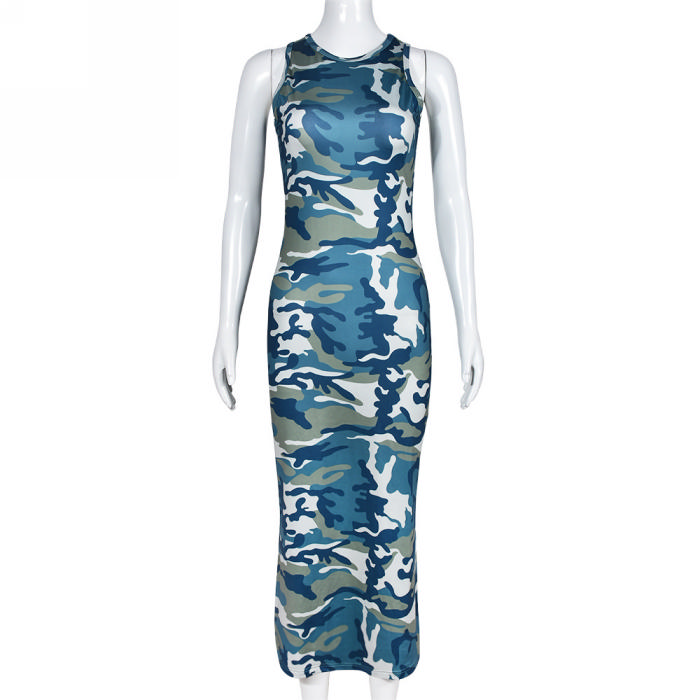 (Real Image)2023 Styles Women Sexy&Fashion Spring&Summer TikTok&Instagram Styles Camouflage Strap Maxi DressSKU: #CF59471-1