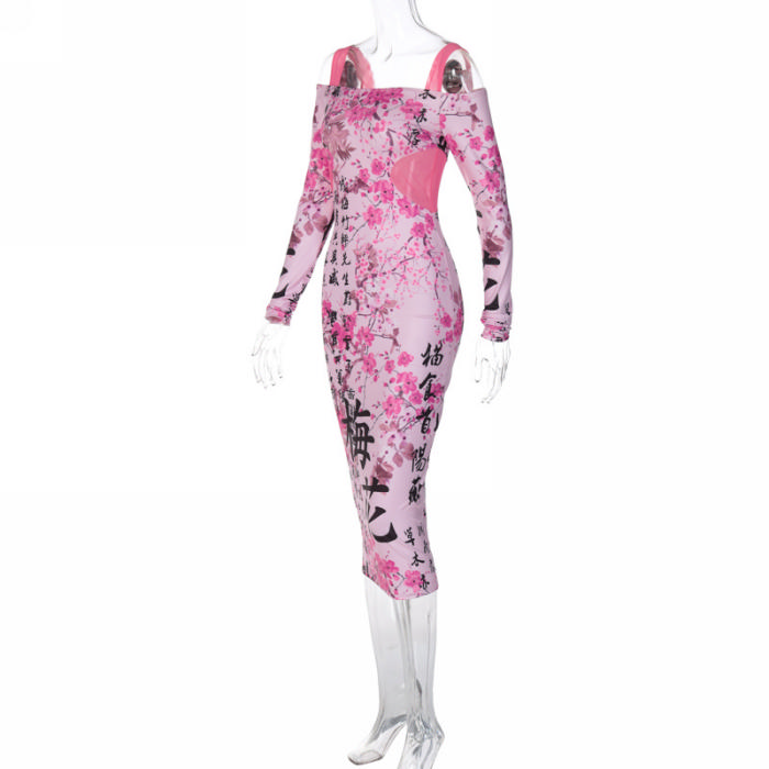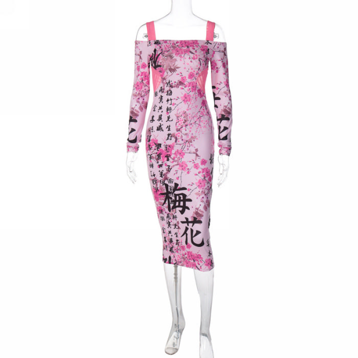 (Real Image)2023 Styles Women Sexy&Fashion Spring&Summer TikTok&Instagram Styles Cold Shoulder Long Sleeve Midi DressSKU: #CF38277-1