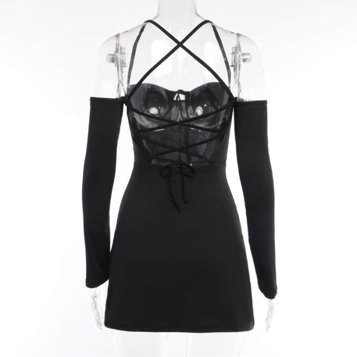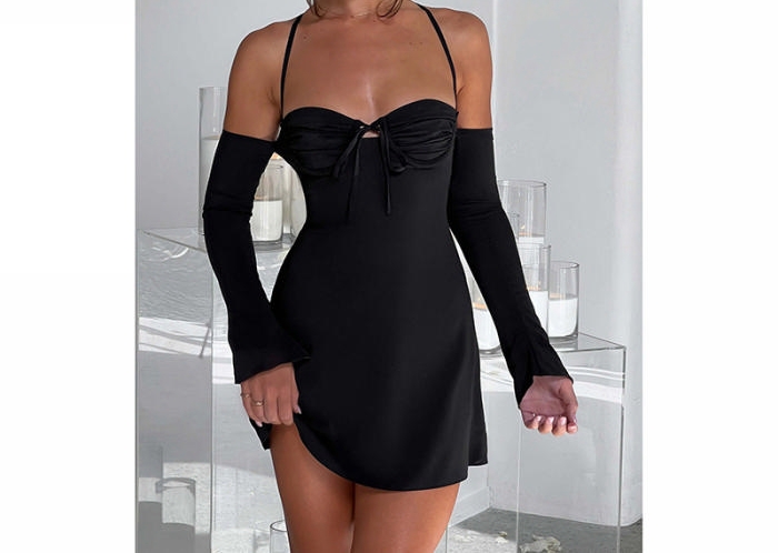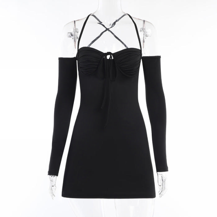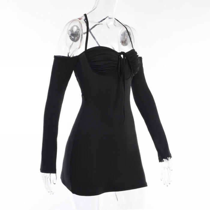 (Real Image)2023 Styles Women Sexy&Fashion Spring&Summer TikTok&Instagram Styles Cold Shoulder Long Sleeve Pink Mini DressSKU: #XF92807-1