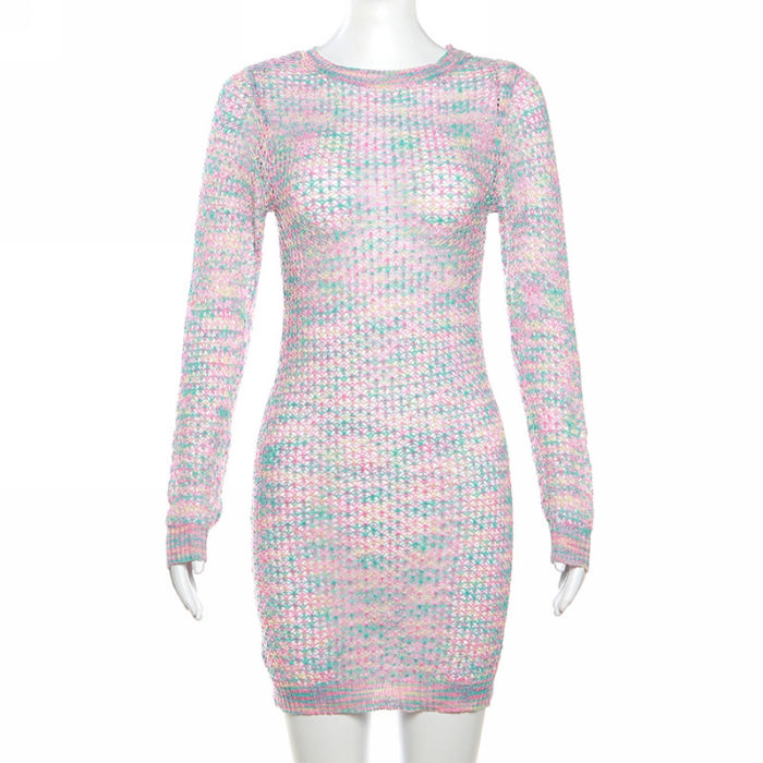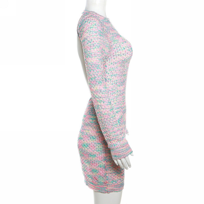 (Real Image)2023 Styles Women Sexy&Fashion Spring&Summer TikTok&Instagram Styles Colorful Sweater Long Sleeve Backless Mini DressSKU: #CF77544-1