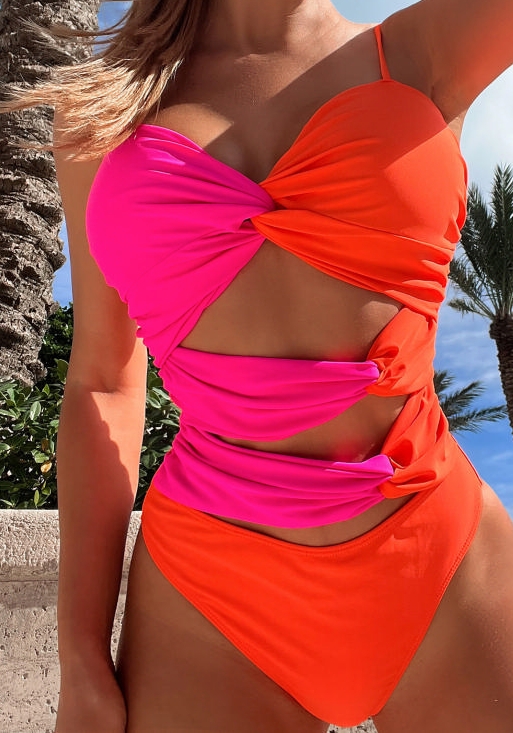 (Real Image)2023 Styles Women Sexy&Fashion Spring&Summer TikTok&Instagram Styles Contrast Color Cut Out One Piece SwimwearSKU: #CF55130-1