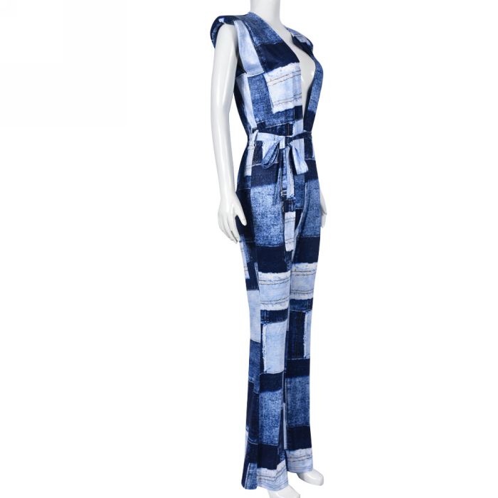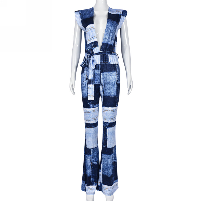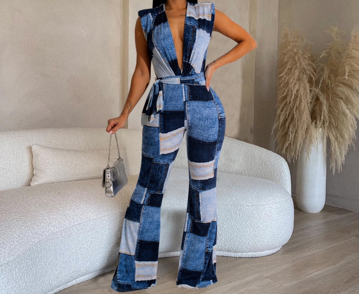 (Real Image)2023 Styles Women Sexy&Fashion Spring&Summer TikTok&Instagram Styles Contrast Color Deep V Neck JumpsuitSKU: #CF59664-1