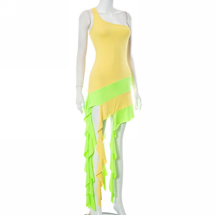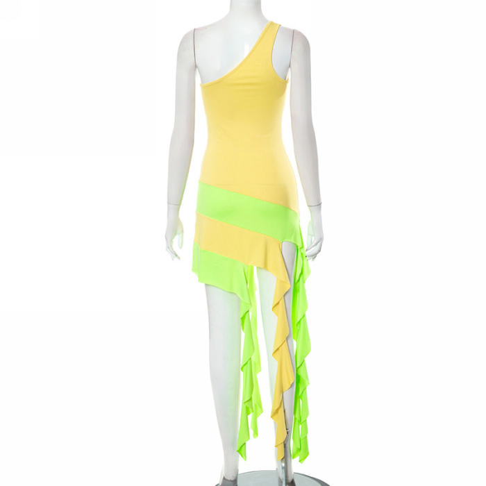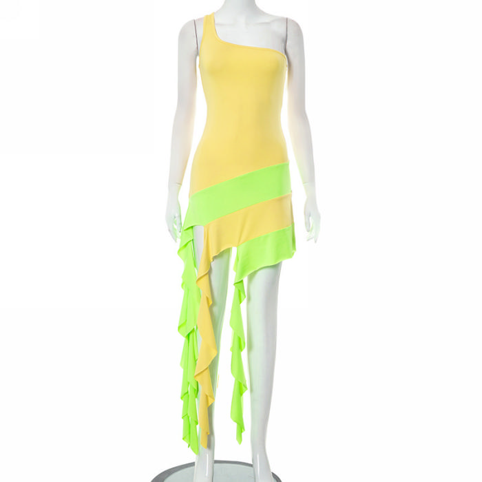 (Real Image)2023 Styles Women Sexy&Fashion Spring&Summer TikTok&Instagram Styles Contrast Color Irregular Maxi DressSKU: #CF80111-1