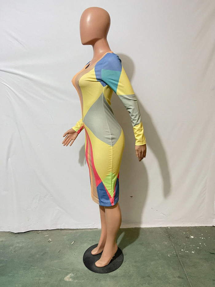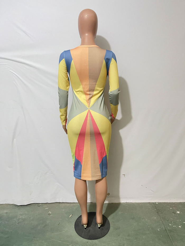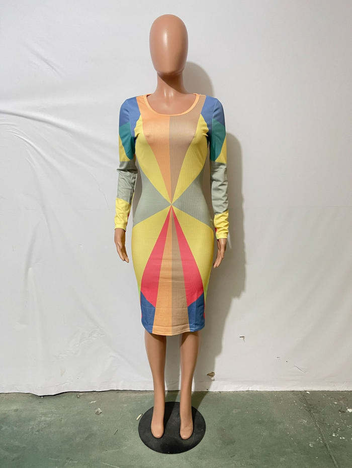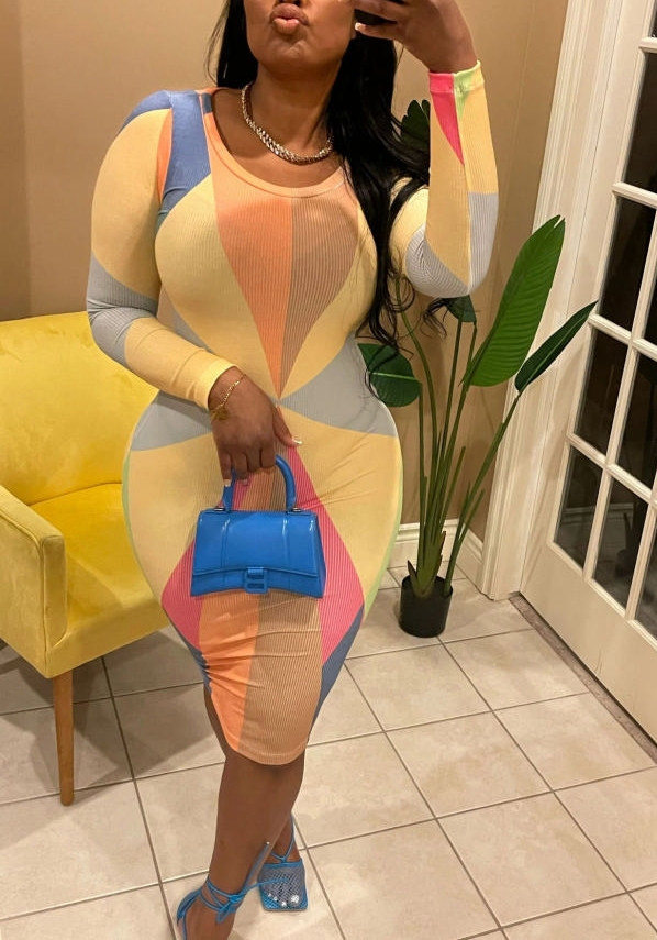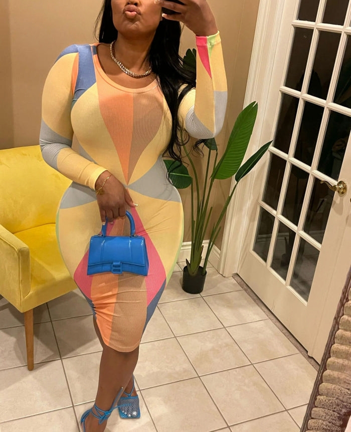 (Real Image)2023 Styles Women Sexy&Fashion Spring&Summer TikTok&Instagram Styles Contrast Color Long Sleeve Midi DressSKU: #OEM5884-2