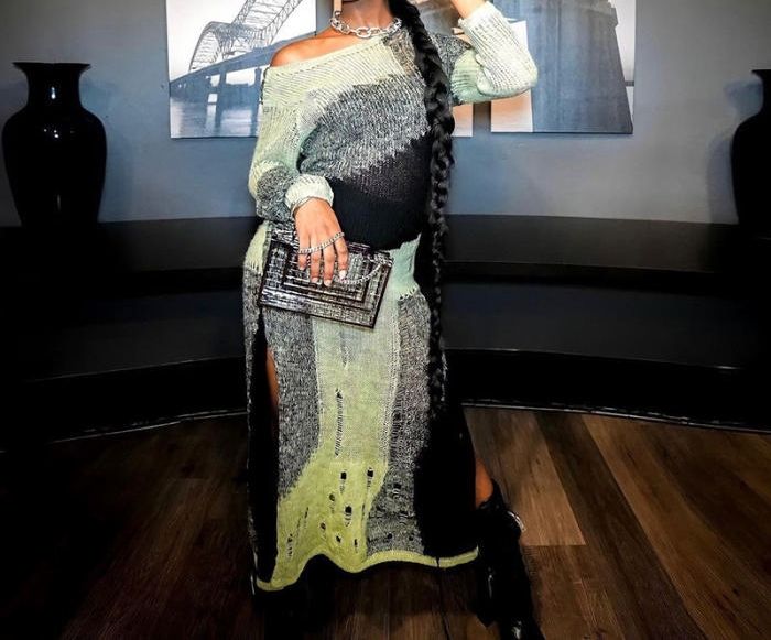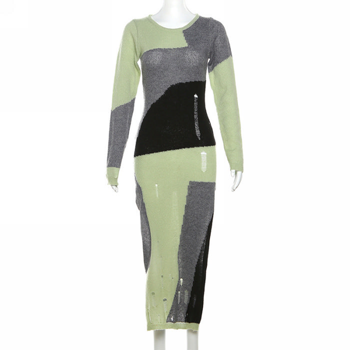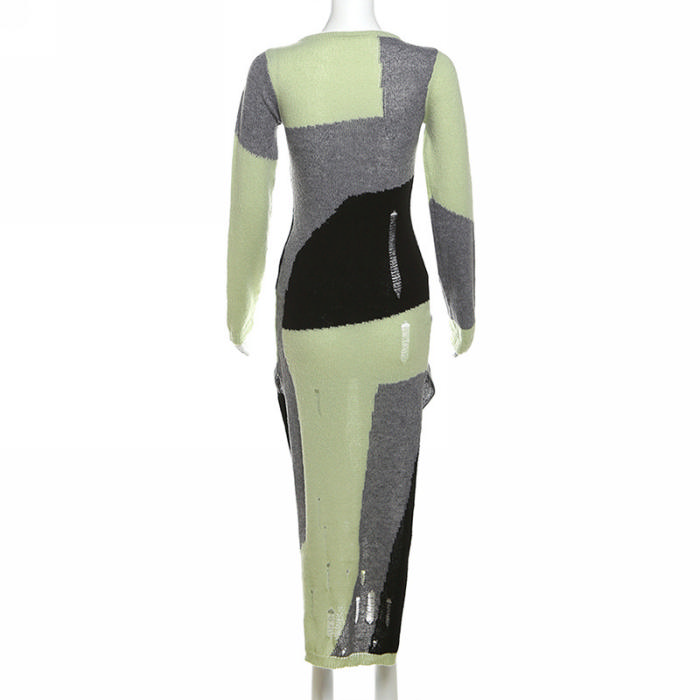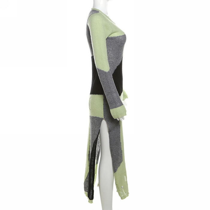 (Real Image)2023 Styles Women Sexy&Fashion Spring&Summer TikTok&Instagram Styles Contrast Color Sweater High Split Maxi DressSKU: #CF77508-1