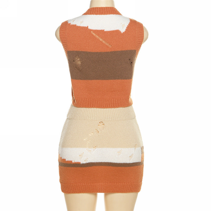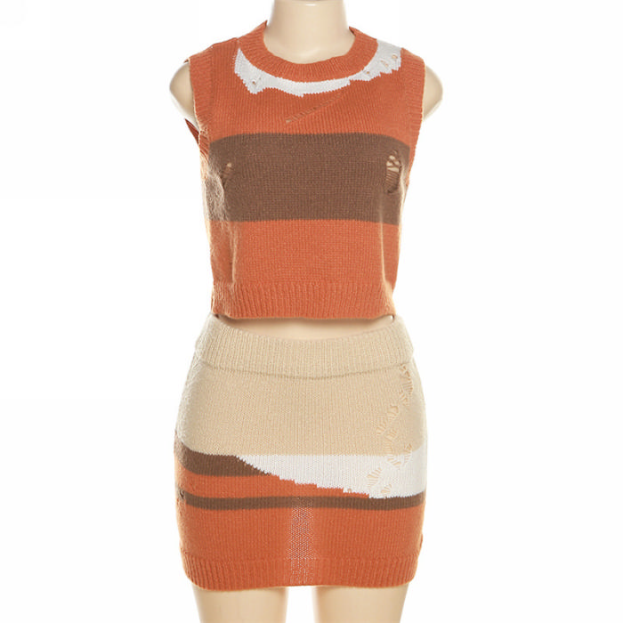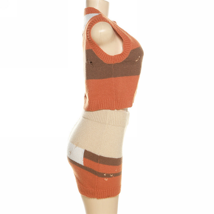 (Real Image)2023 Styles Women Sexy&Fashion Spring&Summer TikTok&Instagram Styles Contrast Color Sweater Two Piece DressSKU: #CF77296-1