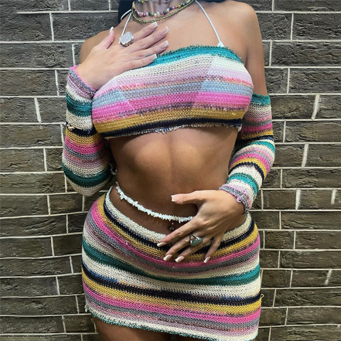 (Real Image)2023 Styles Women Sexy&Fashion Spring&Summer TikTok&Instagram Styles Contrast Color Two Piece DressSKU: #CF77373-1