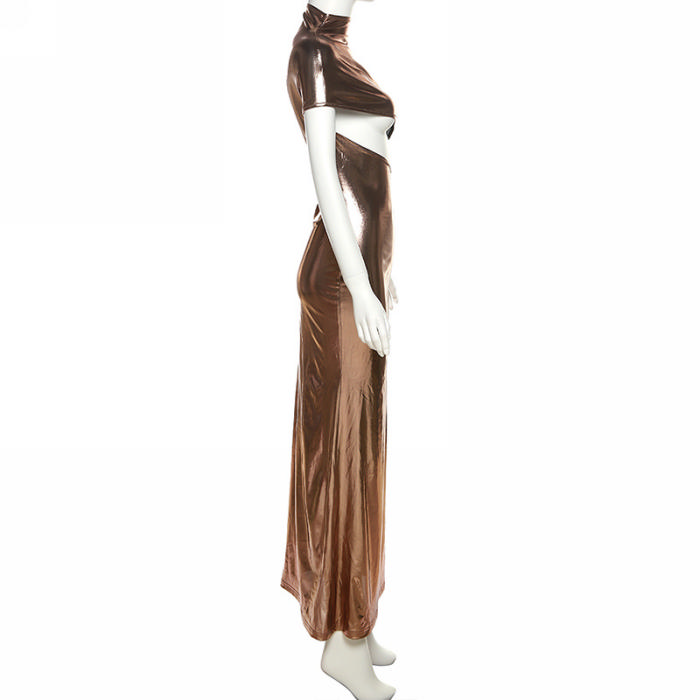 (Real Image)2023 Styles Women Sexy&Fashion Spring&Summer TikTok&Instagram Styles Cut Out Brown Maxi DressSKU: #CF83005-1