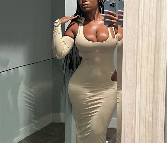 (Real Image)2023 Styles Women Sexy&Fashion Spring&Summer TikTok&Instagram Styles Cut Out Cold Shoulder Maxi DressSKU: #CF77188-1