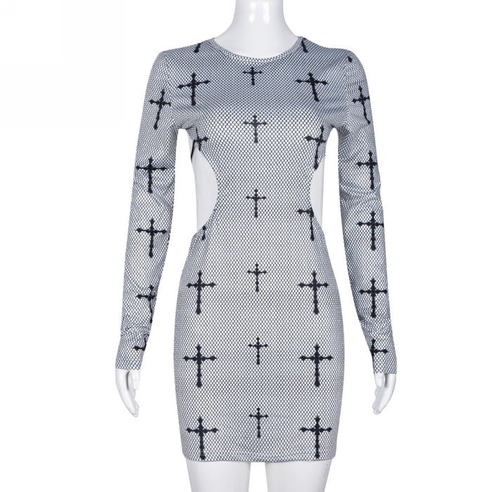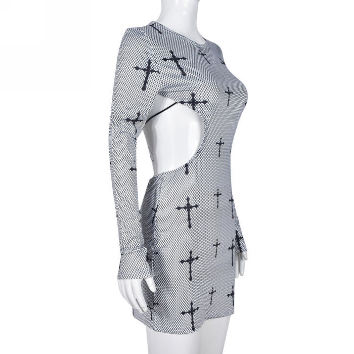 (Real Image)2023 Styles Women Sexy&Fashion Spring&Summer TikTok&Instagram Styles Cut Out Long Sleeve Mini DressSKU: #CF59557-1