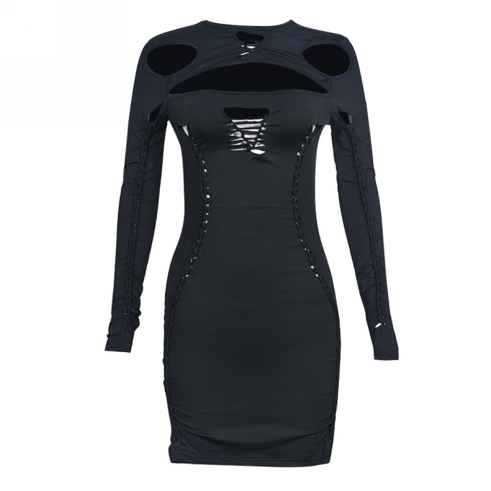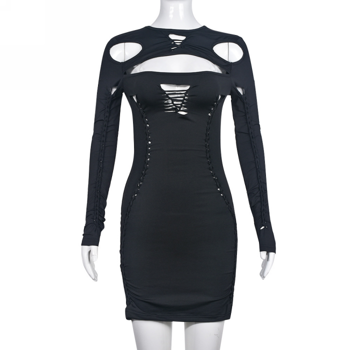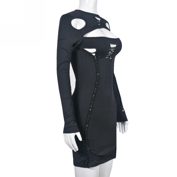(Real Image)2023 Styles Women Sexy&Fashion Spring&Summer TikTok&Instagram Styles Cut Out Long Sleeve Mini DressSKU: #CF59656-1