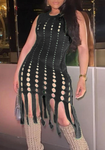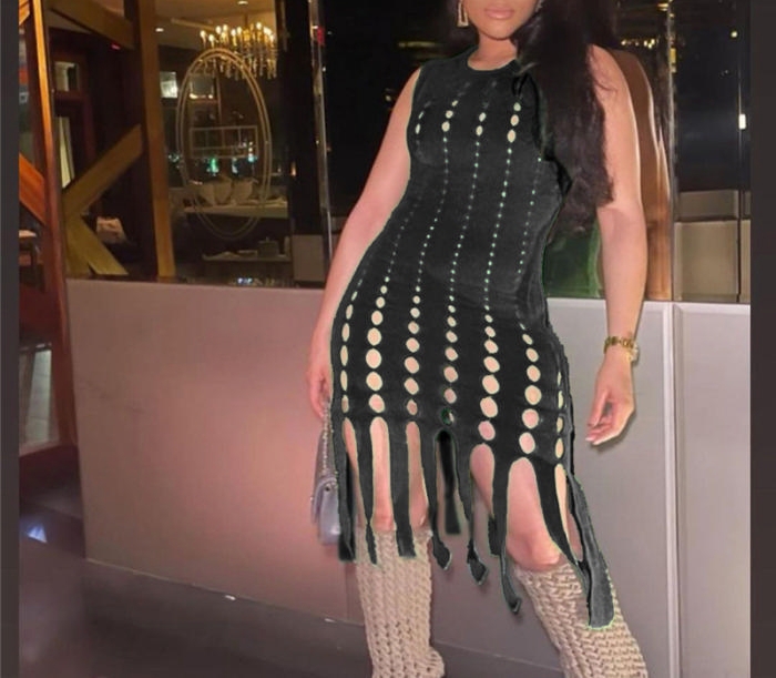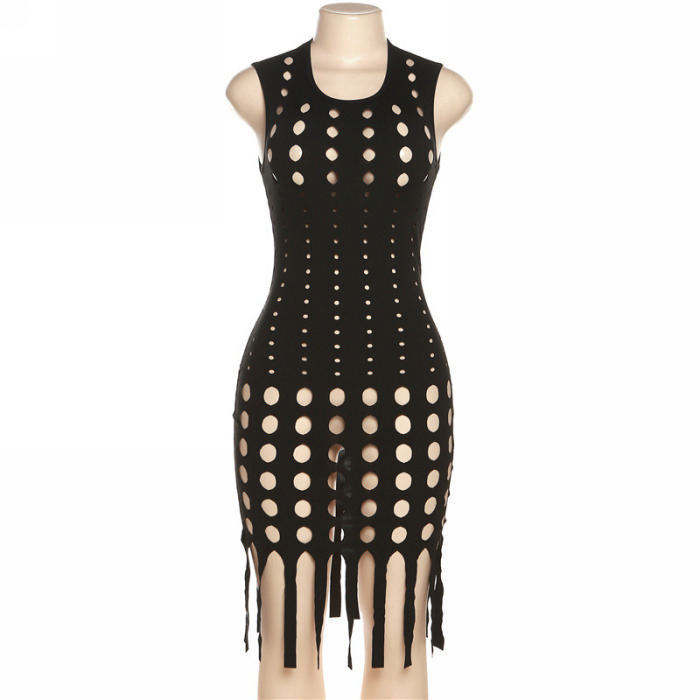 (Real Image)2023 Styles Women Sexy&Fashion Spring&Summer TikTok&Instagram Styles Cut Out Tassel Mini DressSKU: #CF77216-1