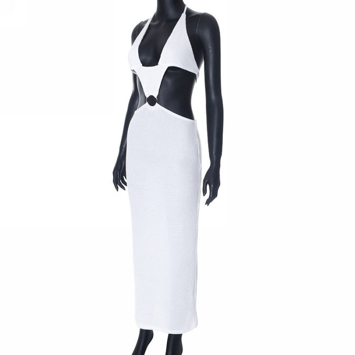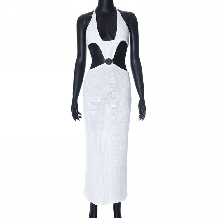 (Real Image)2023 Styles Women Sexy&Fashion Spring&Summer TikTok&Instagram Styles Cut Out White Maxi DressSKU: #CF68257-1