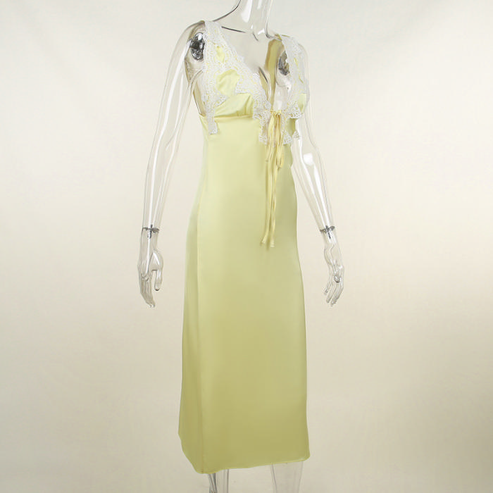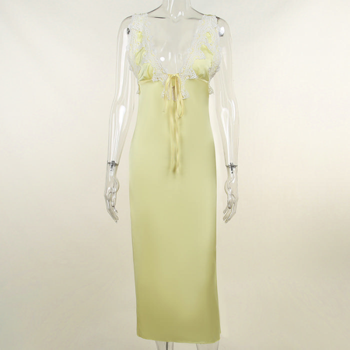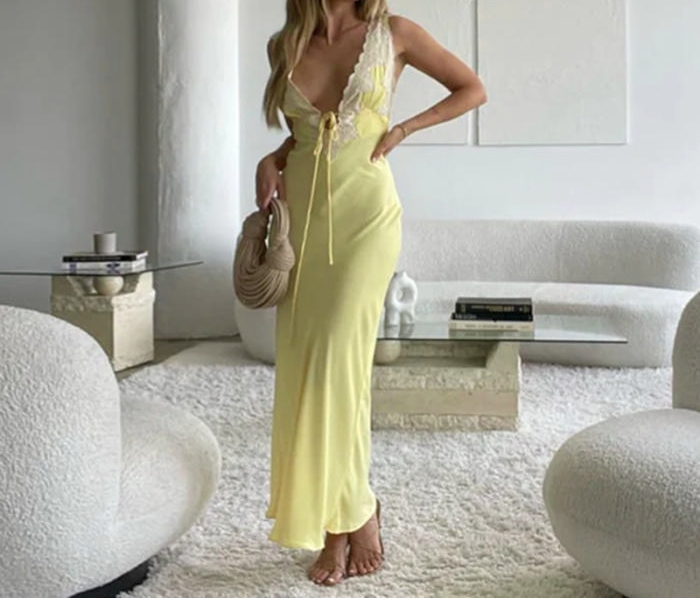 (Real Image)2023 Styles Women Sexy&Fashion Spring&Summer TikTok&Instagram Styles Deep V Neck Maxi DressSKU: #XF92718-1