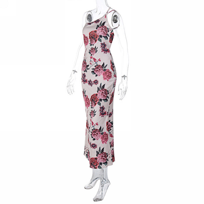 (Real Image)2023 Styles Women Sexy&Fashion Spring&Summer TikTok&Instagram Styles Floral Strap Backless Maxi DressSKU: #CF382233-1