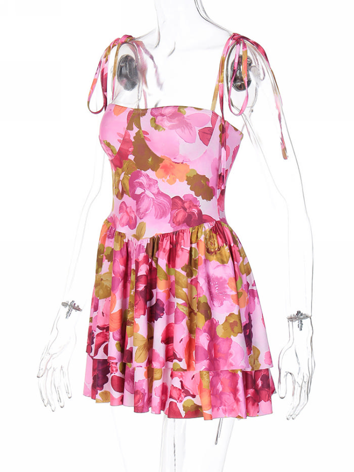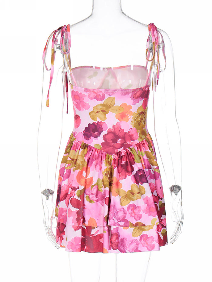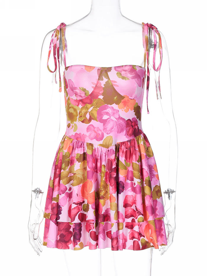 (Real Image)2023 Styles Women Sexy&Fashion Spring&Summer TikTok&Instagram Styles Floral Strap Hem Mini DressSKU: #CF88122-1