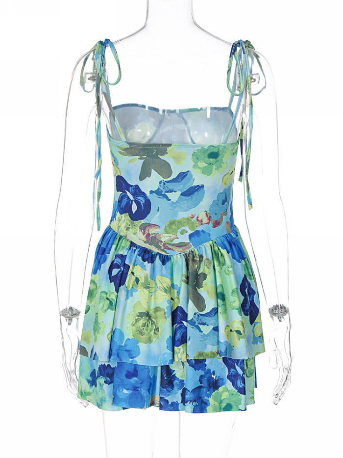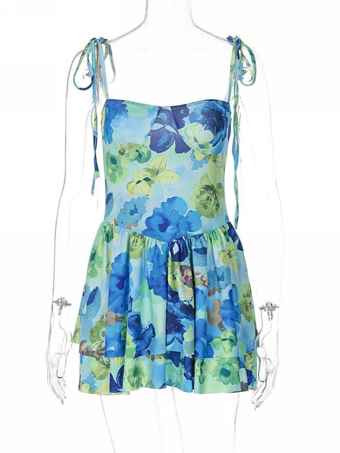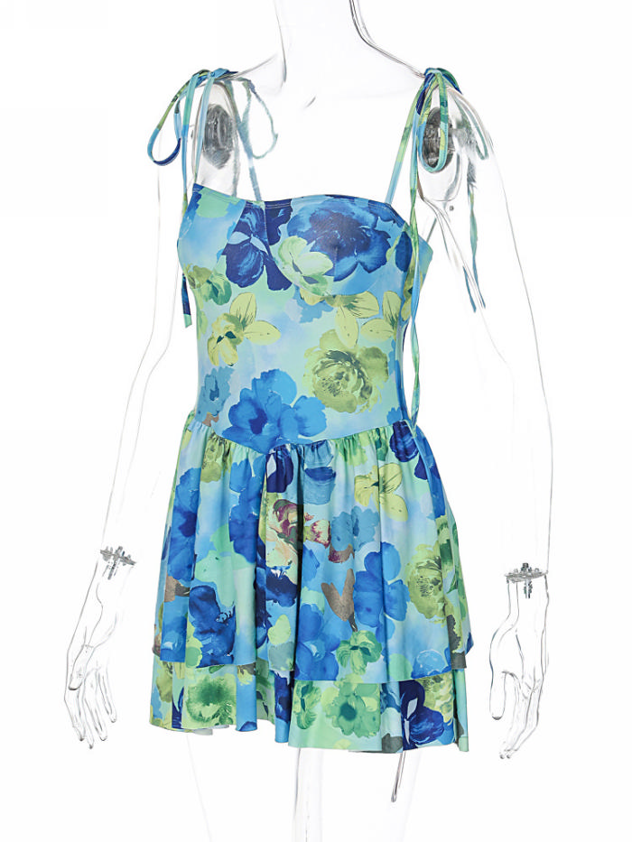 (Real Image)2023 Styles Women Sexy&Fashion Spring&Summer TikTok&Instagram Styles Floral Strap Hem Mini DressSKU: #CF88122-2