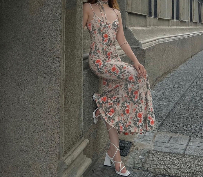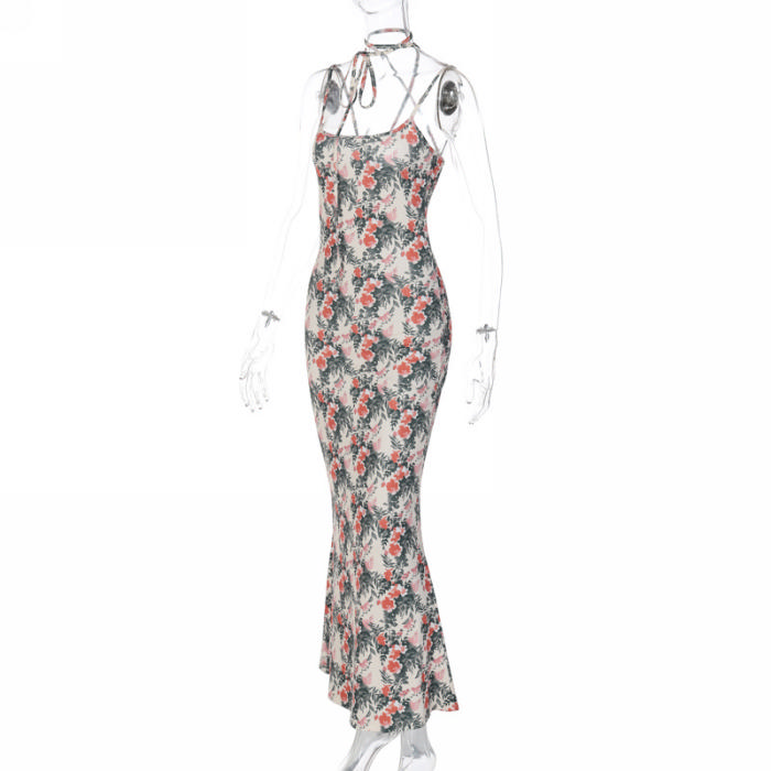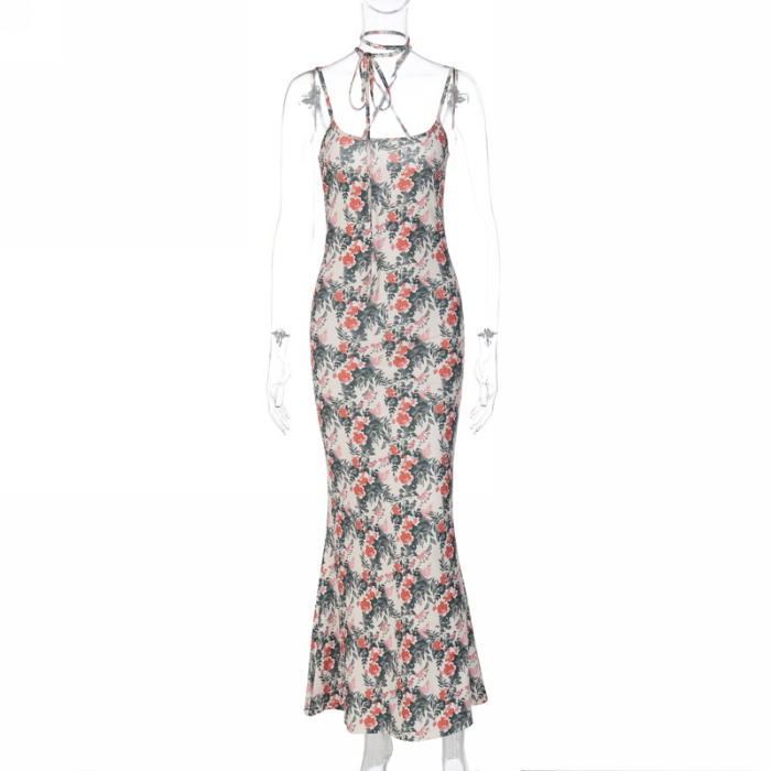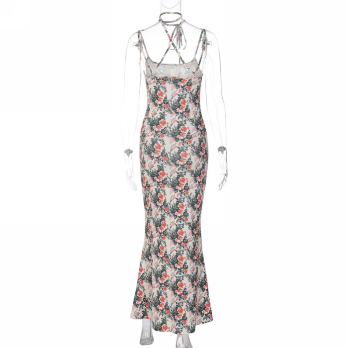 (Real Image)2023 Styles Women Sexy&Fashion Spring&Summer TikTok&Instagram Styles Floral Tie Maxi DressSKU: #CF88129-1