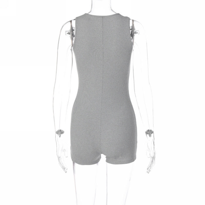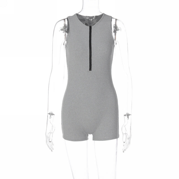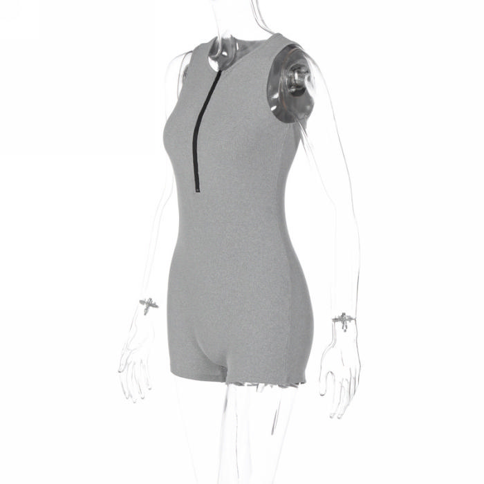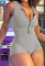 (Real Image)2023 Styles Women Sexy&Fashion Spring&Summer TikTok&Instagram Styles Front Zipper Gray RomperSKU: #CF38220-1
