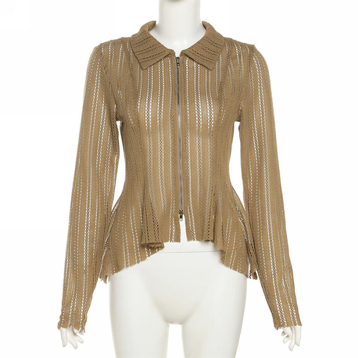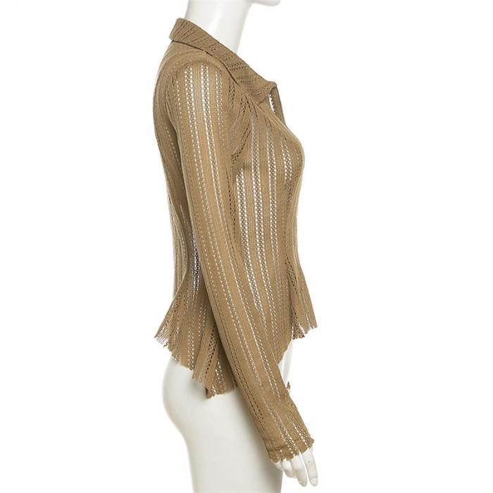 (Real Image)2023 Styles Women Sexy&Fashion Spring&Summer TikTok&Instagram Styles Front Zipper Irregular ShirtsSKU: #CF77612-1
