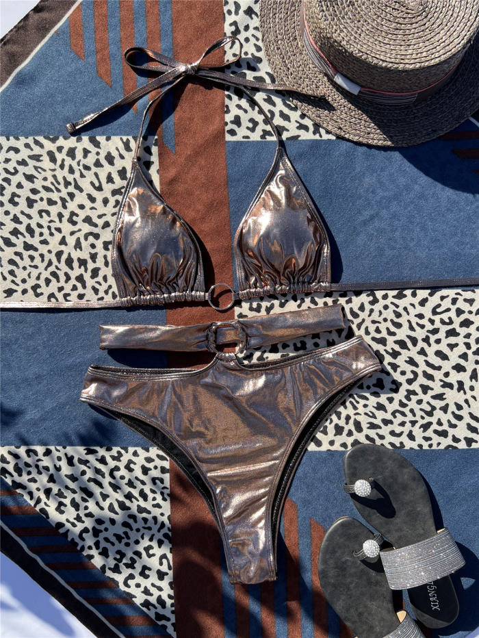 (Real Image)2023 Styles Women Sexy&Fashion Spring&Summer TikTok&Instagram Styles Golden Bikini SetSKU: #CF35104-1