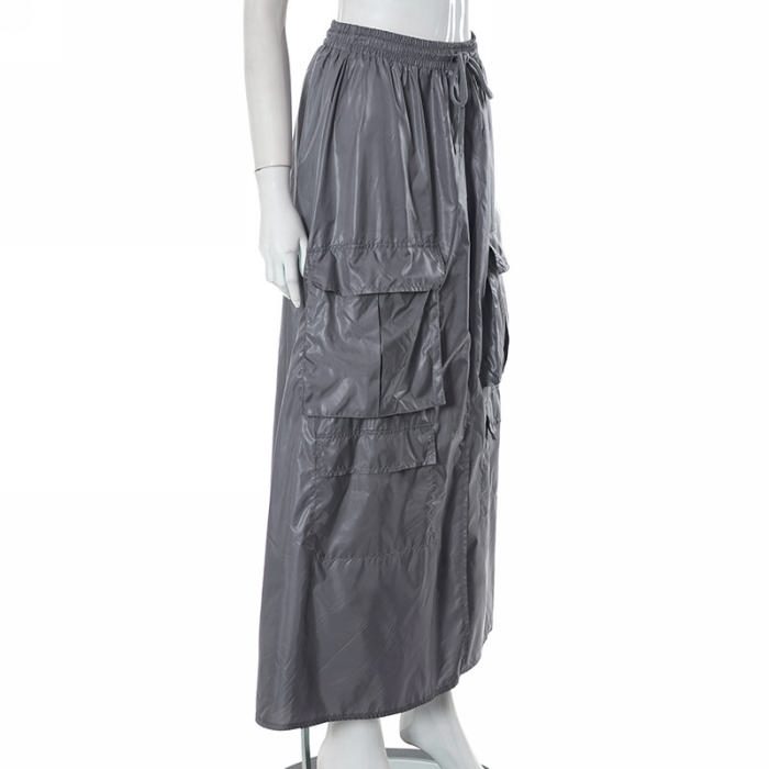 (Real Image)2023 Styles Women Sexy&Fashion Spring&Summer TikTok&Instagram Styles Gray High Split SkirtsSKU: #CF47669-1