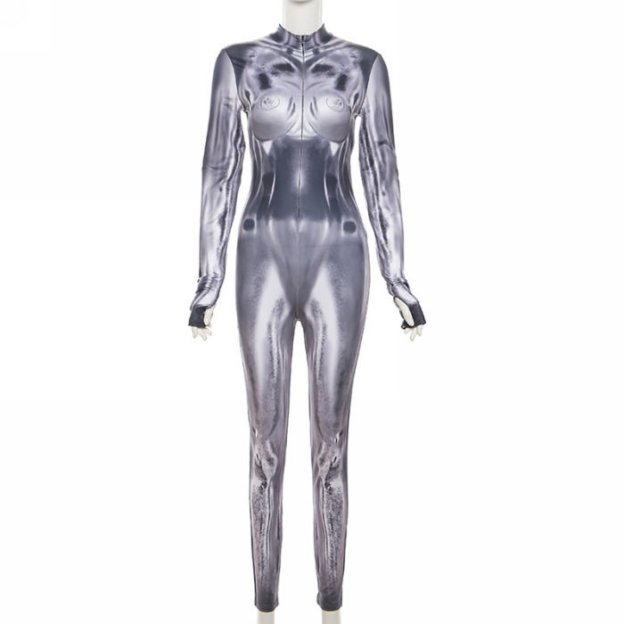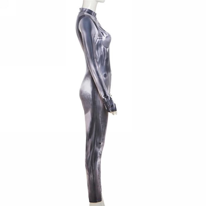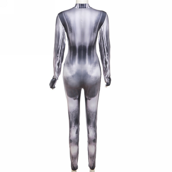 (Real Image)2023 Styles Women Sexy&Fashion Spring&Summer TikTok&Instagram Styles Gray Long Sleeve JumpsuitSKU: #CF77592-1