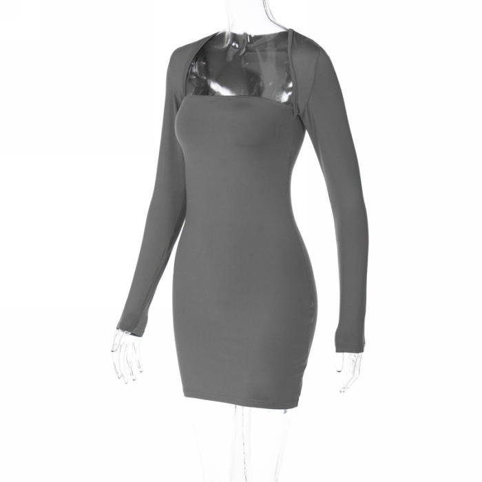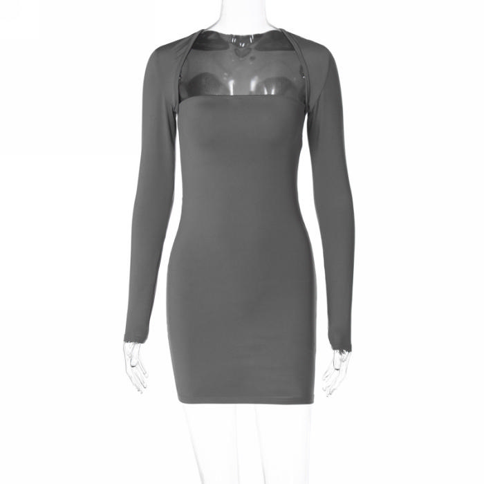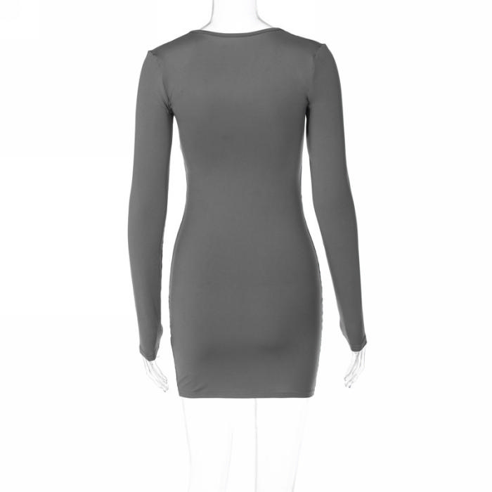 (Real Image)2023 Styles Women Sexy&Fashion Spring&Summer TikTok&Instagram Styles Gray Long Sleeve Mini DressSKU: #CF38260-1