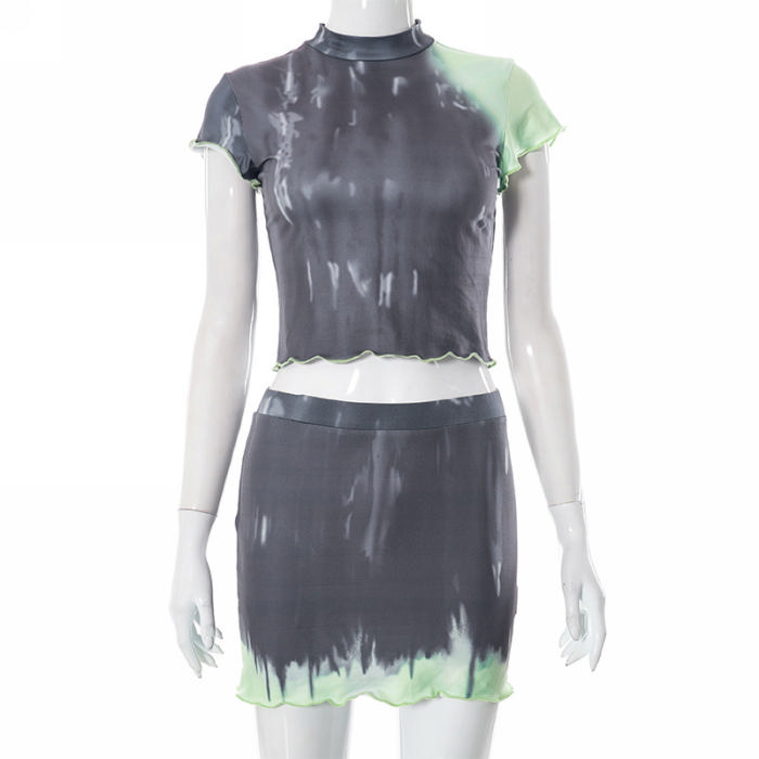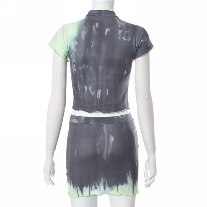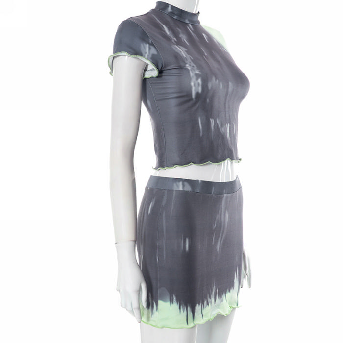 (Real Image)2023 Styles Women Sexy&Fashion Spring&Summer TikTok&Instagram Styles Gray Print Two Piece DressSKU: #CF47663-1
