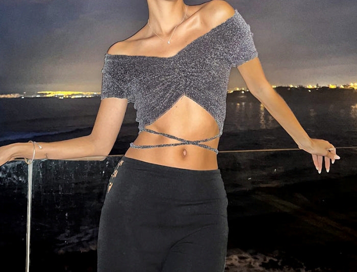 (Real Image)2023 Styles Women Sexy&Fashion Spring&Summer TikTok&Instagram Styles Gray TopsSKU: #CF68251-1