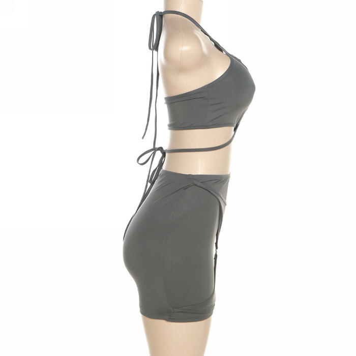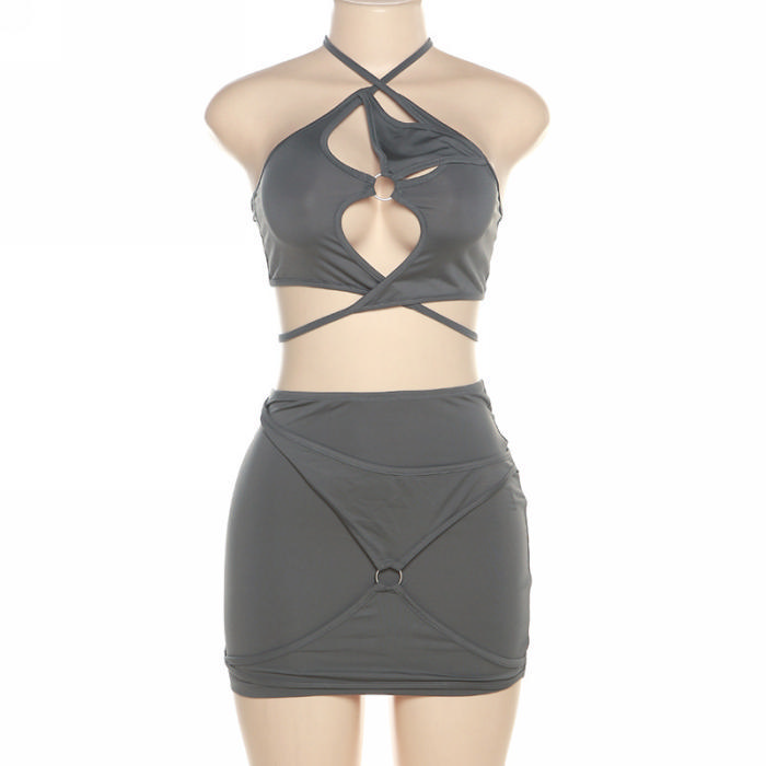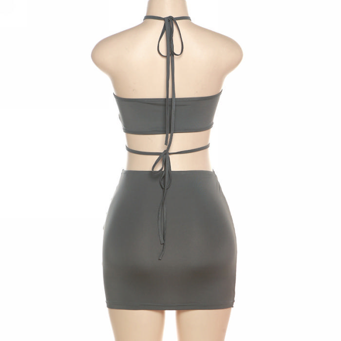 (Real Image)2023 Styles Women Sexy&Fashion Spring&Summer TikTok&Instagram Styles Gray Two Piece DressSKU: #CF83040-1