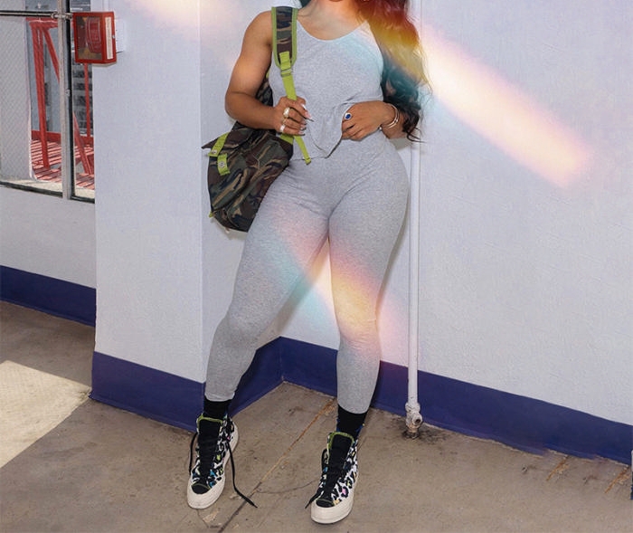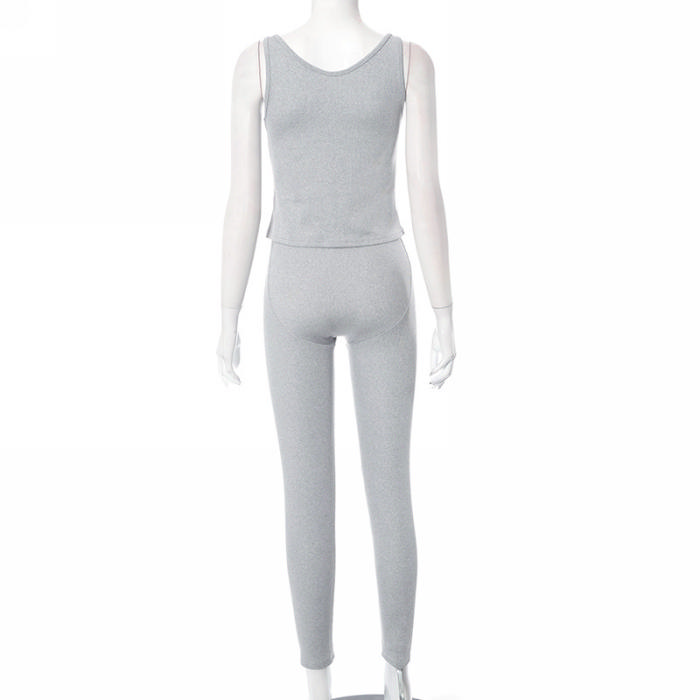 (Real Image)2023 Styles Women Sexy&Fashion Spring&Summer TikTok&Instagram Styles Gray Two Piece SuitSKU: #CF47694-1